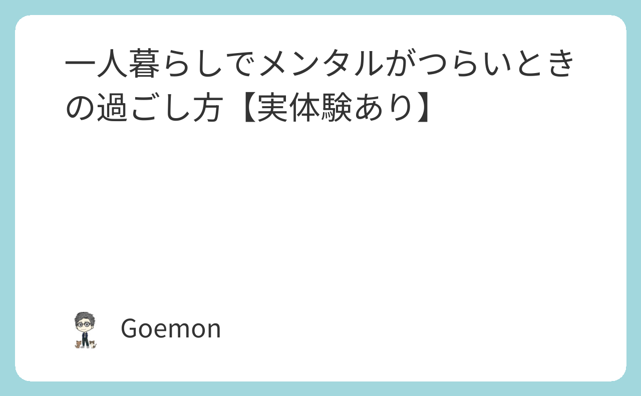 私の場合、転職を機に一人暮らしを始めました。新しい地域だったので周りに知り合いがおらず、頼れる人間がおらず本当に孤独の状態でした。