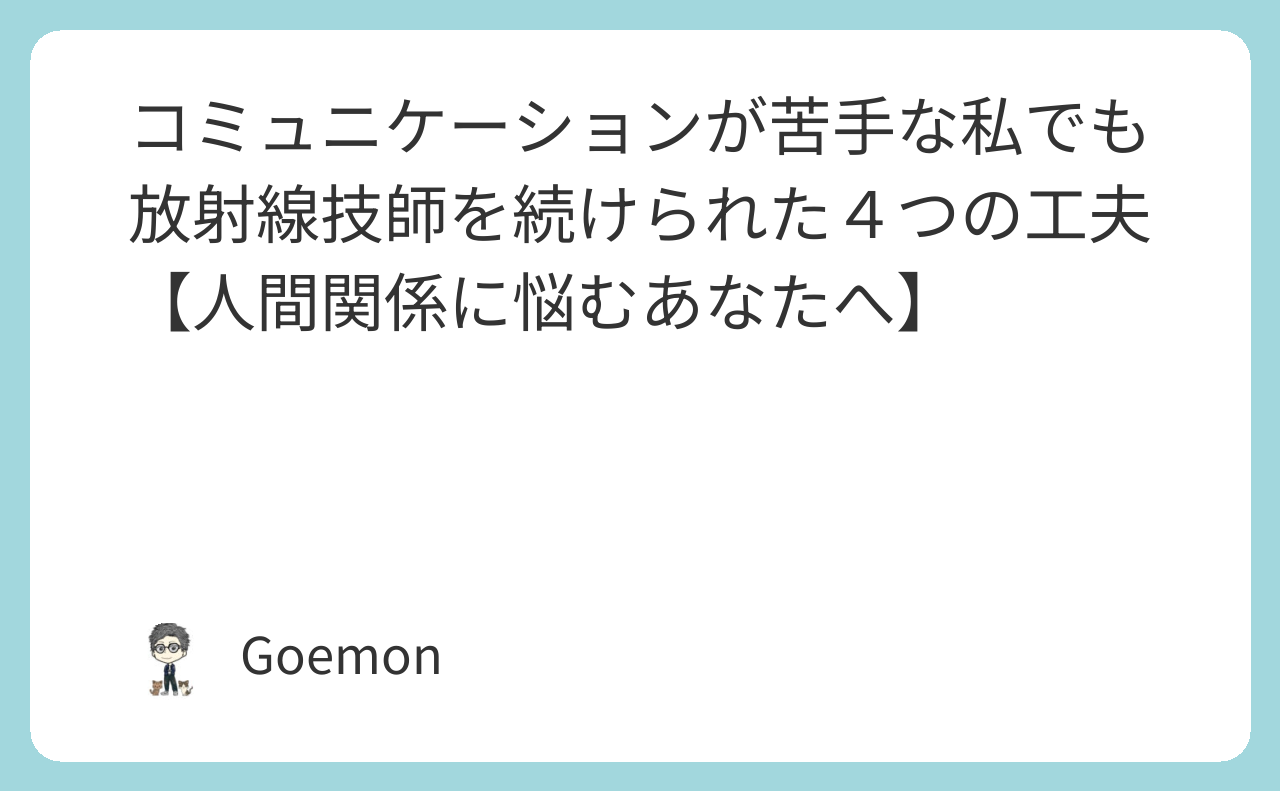 - 放射線技師を続ける以上は「コミュニケーション・人付き合い」は避けては通れない。